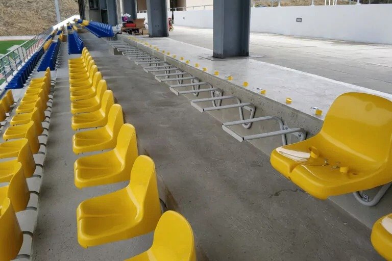 Fabricado completamente em plástico polipropileno copolímero com aditivos anti-UV e anti-chama (V0). Pode ser utilizado em arquibancada metálica ou de concreto, também sendo utilizada em outros ambientes, como praças, pontos de ônibus e etc. Disponível em várias cores, tem instalação rápida e fácil, além de ter ótima durabilidade e manutenção simples.