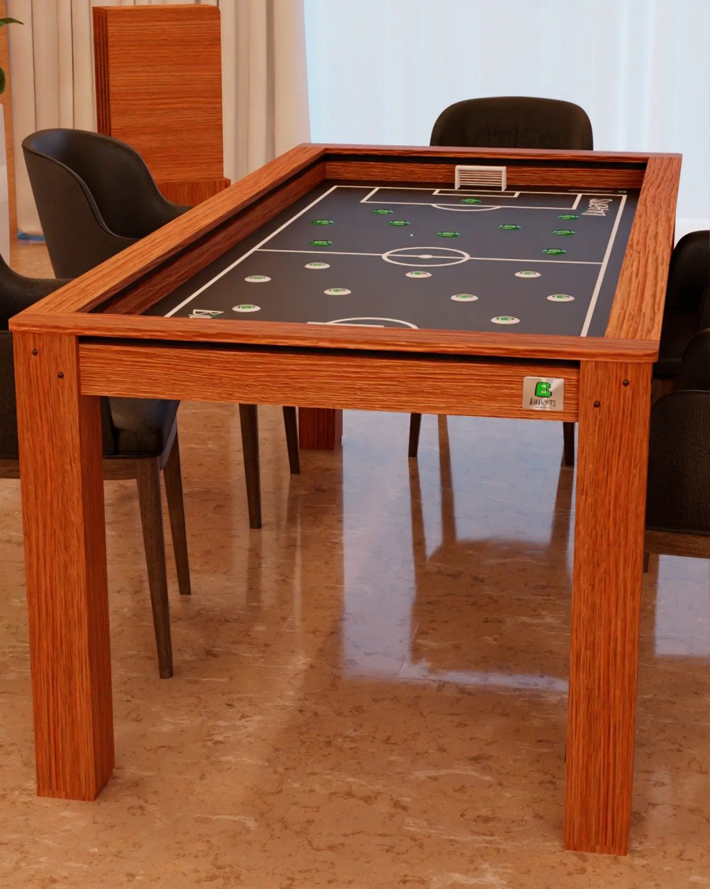 Campo de jogo: Revestido com tecido acrílico Thaís, disponível em diversas opções de cores para personalização ao seu estilo.