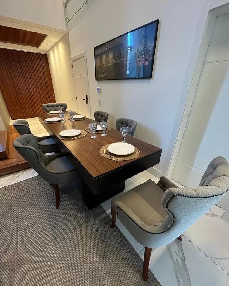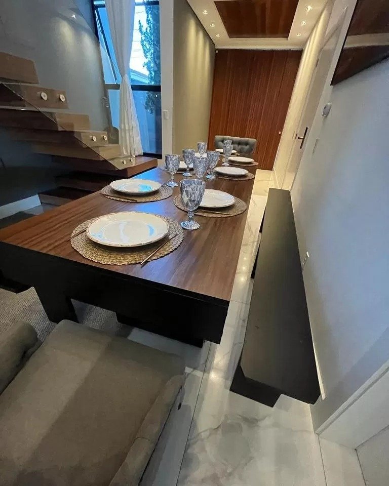 2,74 x 0,76m sem tampo de jantar 2,84 x 0,86m com tampo de jantar