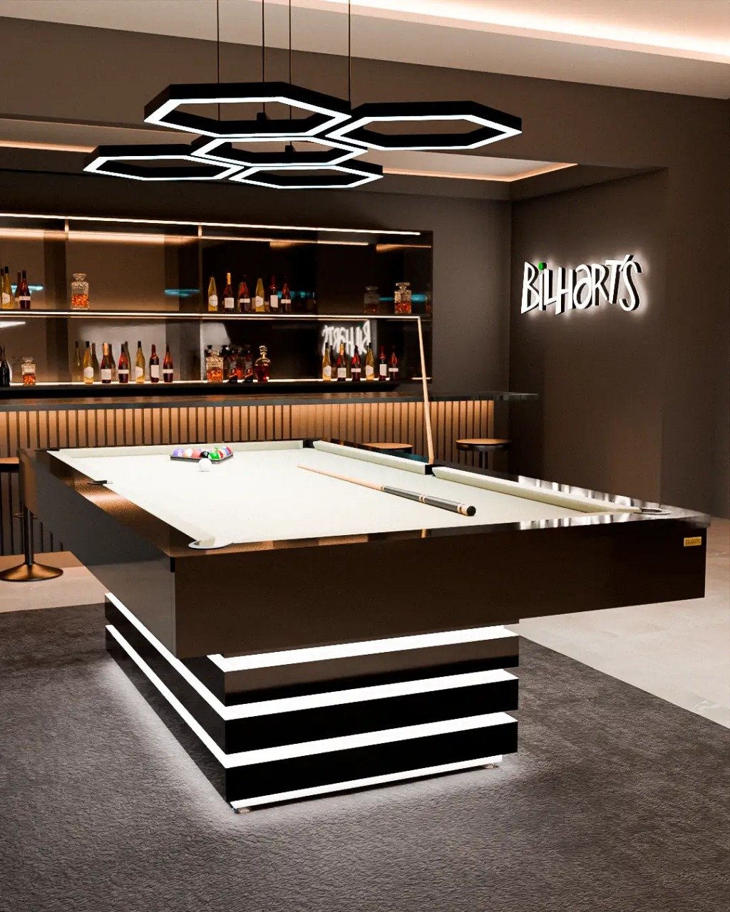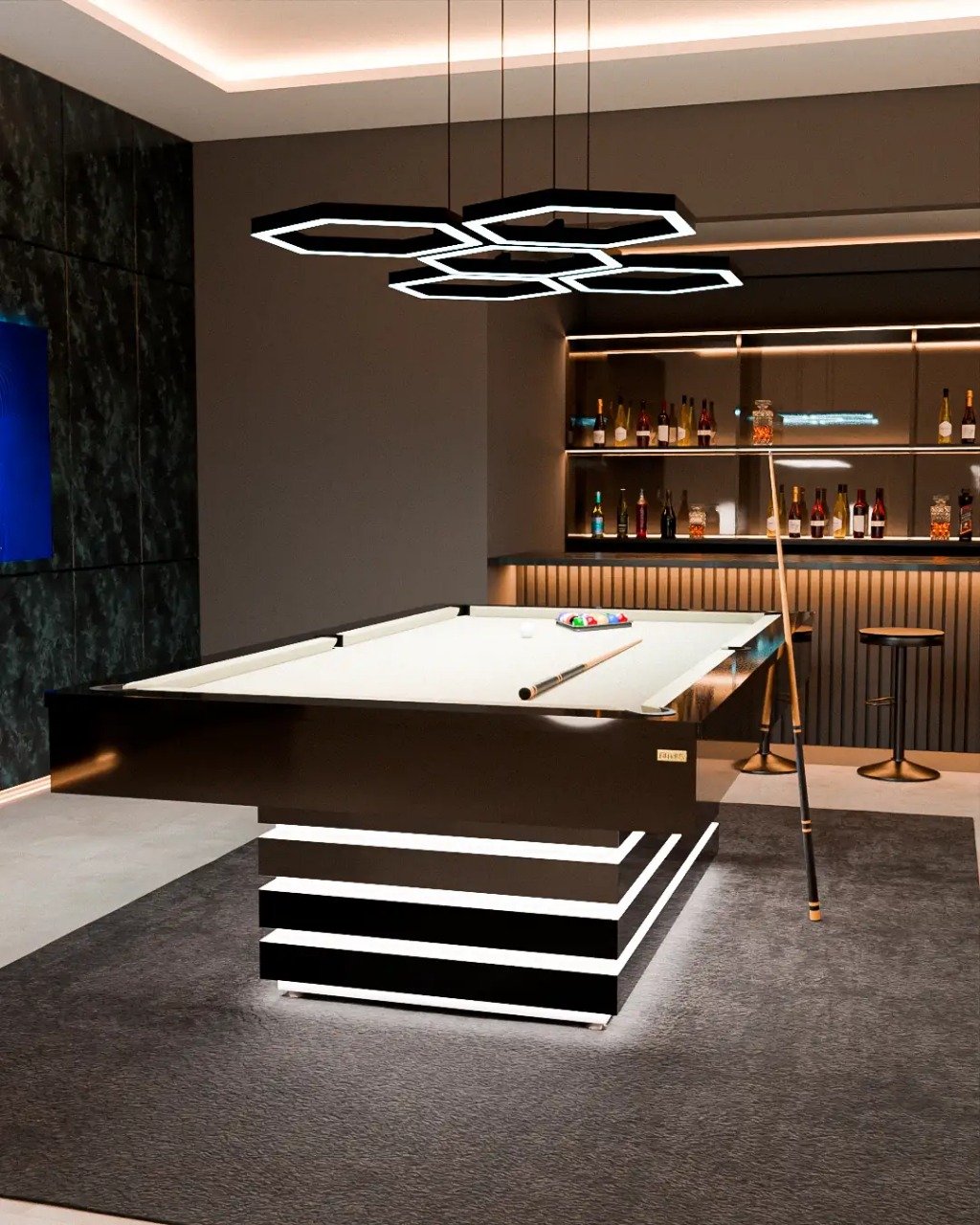 Apresentamos a Mesa de Sinuca Space, um produto que redefine o conceito de entretenimento e luxo. Combinando design sofisticado, tecnologia de ponta e materiais de alta qualidade, a Space é mais do que uma mesa de sinuca; é uma peça central de interação e automação para sua casa.