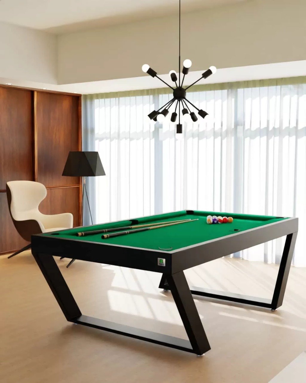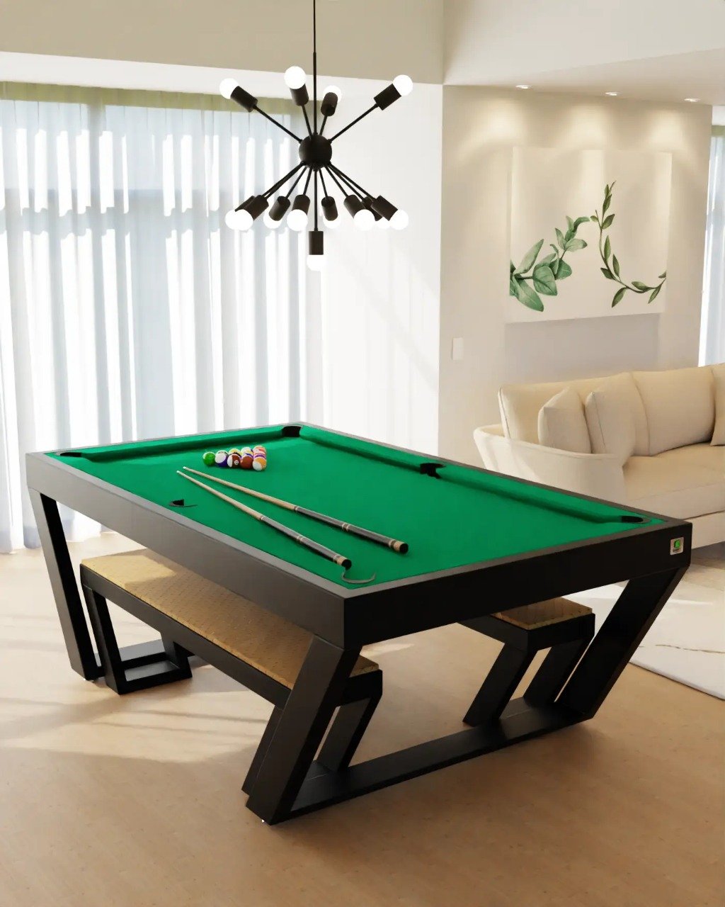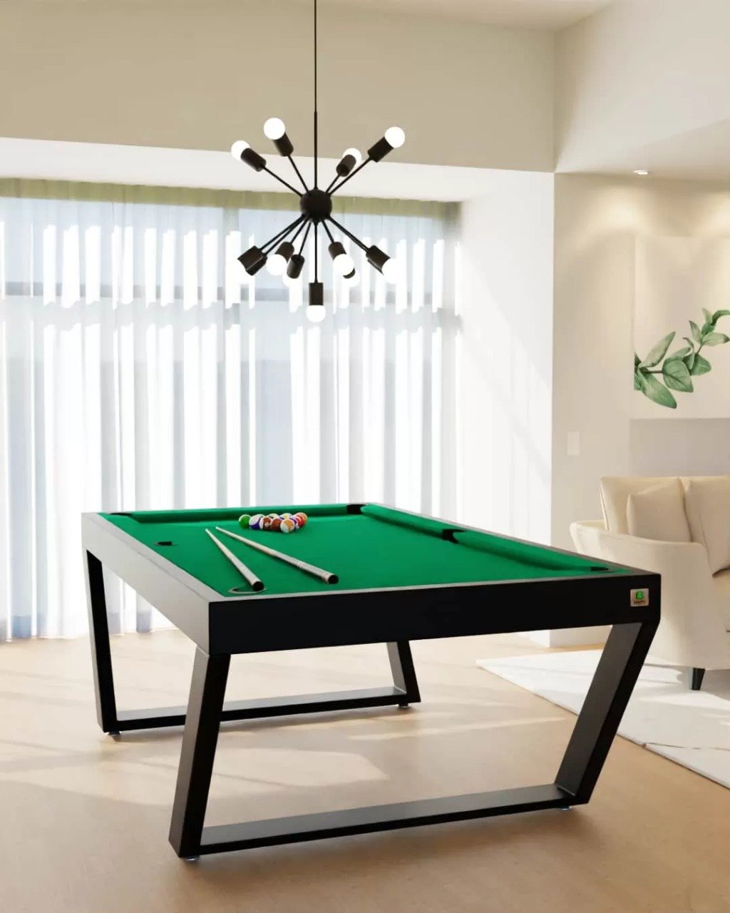 Apresentamos a mesa de sinuca Londres linha industrial (estrutura em ferro galvanizado) com sistema de redinha embutida, a escolha perfeita para quem busca ter uma mesa de sinuca e desfrutar de momentos divertidos. Nossa mesa é construída com materiais de alta qualidade, recomendados pela CBBS – Confederação Brasileira de Bilhar e Sinuca, garantindo uma experiência de jogo profissional.