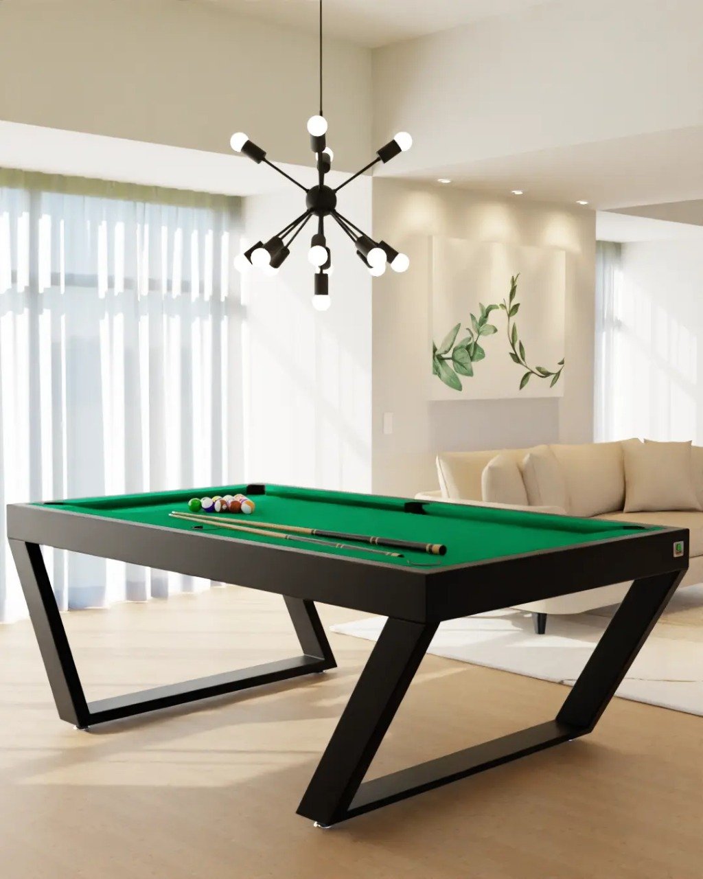Recomendado ter um espaço de 1,40m em cada lado da mesa para evitar que o taco bata na parede ou em objetos próximos. A mesa não possui gaveta, as bolas são retiradas diretamente na caçapa. As cores podem ter pequenas alterações devido a variação de monitor para monitor.