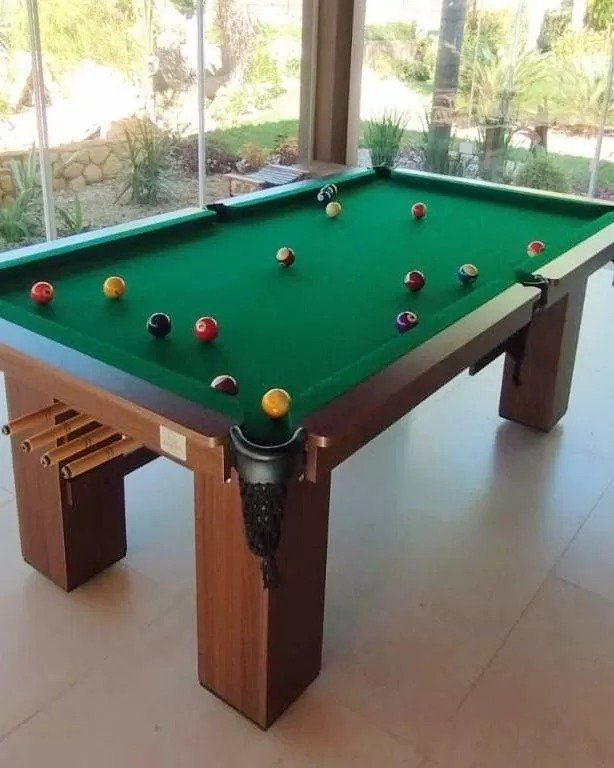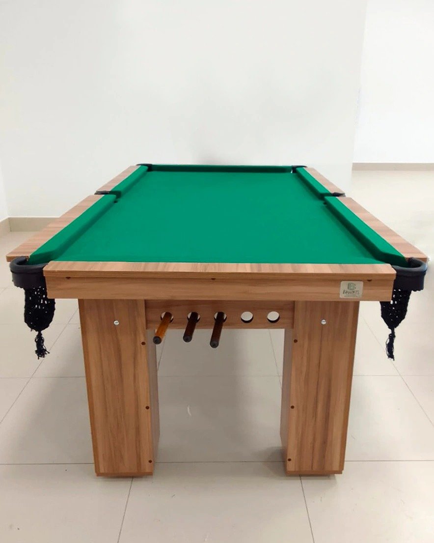 Recomendado ter um espaço de 1,40m em cada lado da mesa para evitar que o taco bata na parede ou em objetos próximos. A mesa não possui gaveta, as bolas são retiradas diretamente na caçapa. As cores podem ter pequenas alterações devido a variação de monitor para monitor.